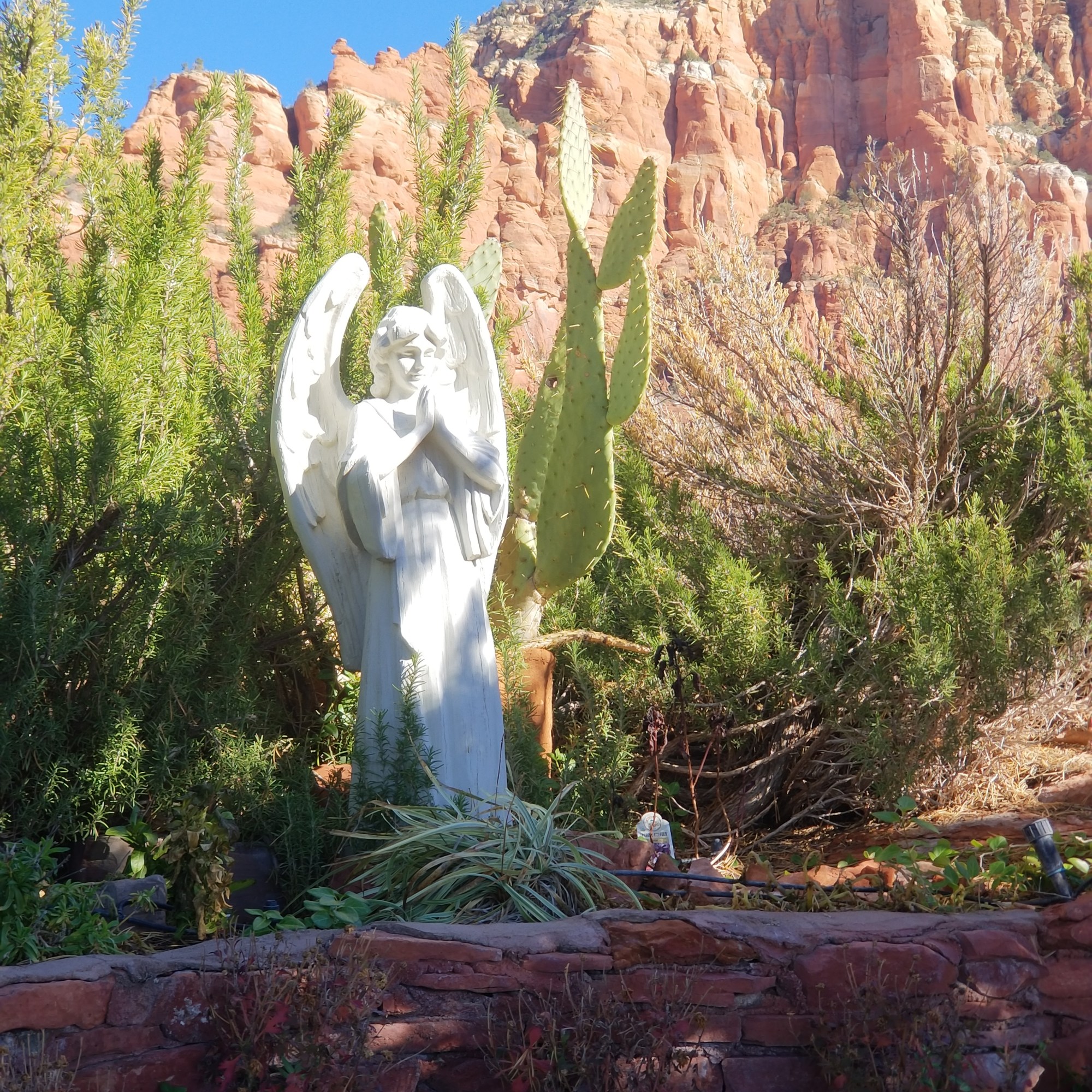 Like the Bell rock, parking here was also a challenge. We wanted to take the best angle of the Chapel from the bottom of the hill, but there wasn’t a place to stop, so we kept driving all the way up to visit the inside of the Chapel. We found a spot, parked and walked through a pathway to the entrance of the Chapel.